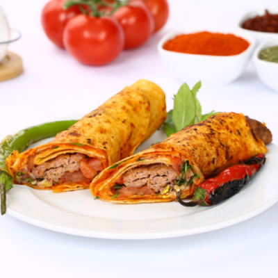 Özel baharatlarla marine edilmiş tavuk eti, taze lavaşa sarılarak lezzetli ve doyurucu bir dürüm haline gelir.