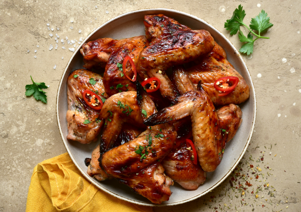 Özel baharatlarla marine edilen tavuk kanatları, ızgarada pişirilerek lezzetli ve doyurucu bir seçenek haline gelir.
